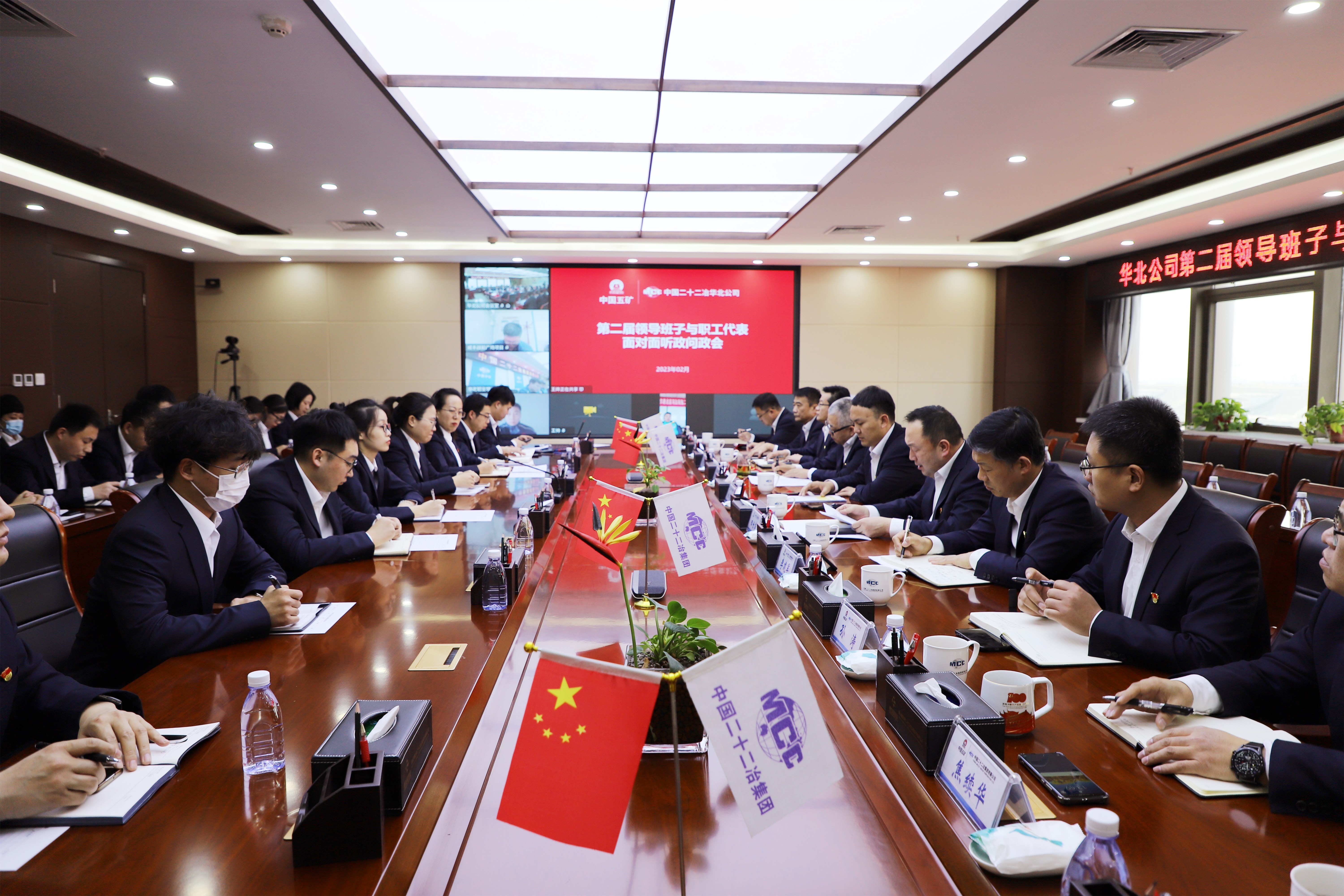 2月2日,華北公司召開第二屆領導班子成員與職工代表面對面聽政問政會。公司總經理、黨委副書記杜小龍代表領導班子通報2022年工作目標任務完成情況及取得成效,黨委副書記(主持工作)、紀委書記、代理工會主席、副總經理田世英主持會議。