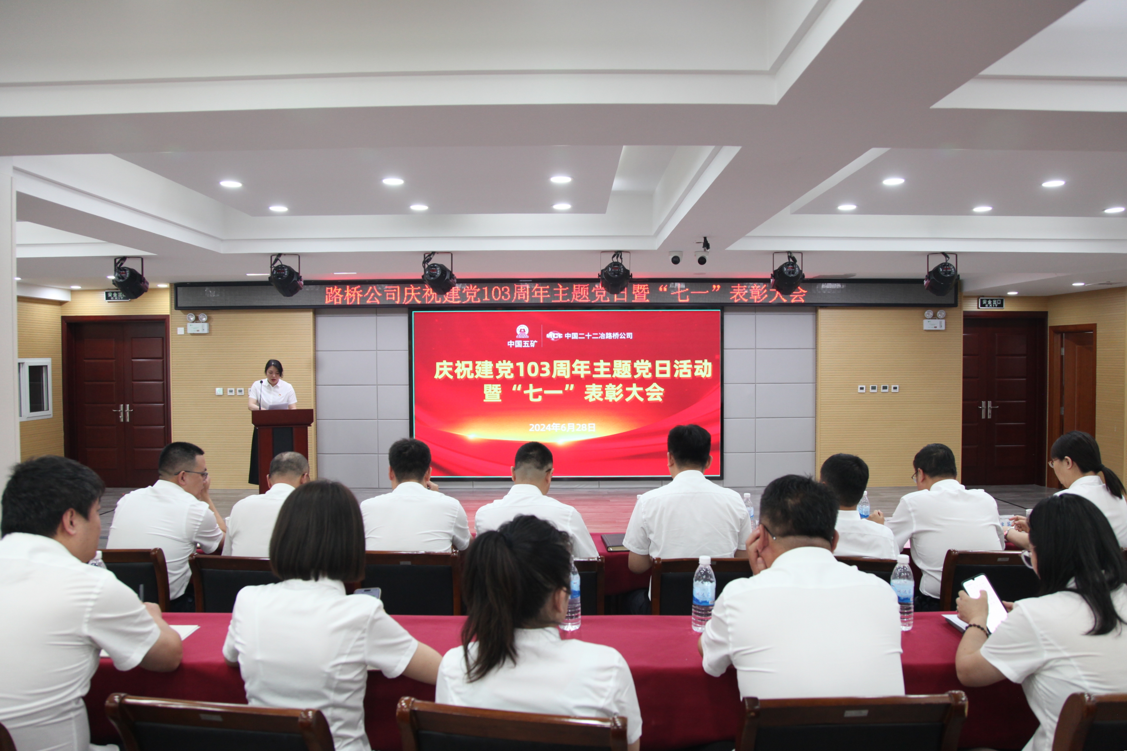 6月28日,路橋公司舉辦慶祝建黨103周年主題黨日活動暨“七一”表彰大會。旨在引導黨員干部憶黨史、銘黨恩、強黨性、肅黨紀、正黨風,激勵廣大黨員擔當作為、求真務實、高效進取、為公司全面完成“創新提升建設年”各項任務,實現高質量發展作出更大貢獻。會議由黨群工作部部長范昕煜主持。