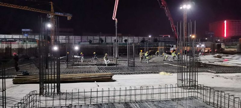 奧萊項目要在年底完成對地下部分的封頂,項目部每天安排值班人員對現場進行夜間旁站、監督。由于現場施工人員較多,流動性大,為做好現場管理,項目部人員積極與分包溝通,對作業人員進行安全交底,保證現場的施工能井然有序的進行。