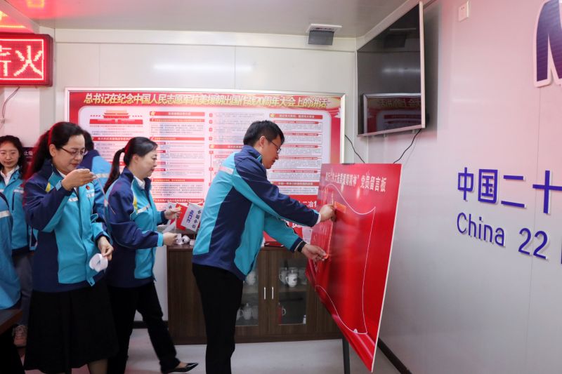 在“學(xué)黨史”環(huán)節(jié),項(xiàng)目黨支部書(shū)記講授偉大抗美援朝精神專題黨課,帶領(lǐng)與會(huì)人員重溫中國(guó)人民志愿軍建立的不朽歷史功勛,并由中國(guó)二十二冶集團(tuán)時(shí)代置業(yè)公司黨委書(shū)記趙曉暉發(fā)放學(xué)習(xí)書(shū)籍《誰(shuí)是最可愛(ài)的人》。在“悟思想”環(huán)節(jié),兩名優(yōu)秀黨員代表講解在抗美援朝戰(zhàn)役中革命英雄的感人事跡,全體與會(huì)黨員在心愿紙上寫下對(duì)黨說(shuō)的心里話和工作行動(dòng)目標(biāo),并將其粘貼在黨員踐行板上表明決心。在“辦實(shí)事”環(huán)節(jié),中國(guó)二十二冶集團(tuán)一公司黨委副書(shū)記趙海濤為與會(huì)黨員佩戴黨徽,通過(guò)此舉充分發(fā)揮黨員干部先鋒模范作用,帶領(lǐng)廣大員工扎根一線,確保項(xiàng)目履約;同時(shí)設(shè)立黨員責(zé)任區(qū),中國(guó)二十二冶集團(tuán)設(shè)計(jì)院黨委副書(shū)記劉軍分別為開(kāi)發(fā)、設(shè)計(jì)、施工三方黨員代表授牌,黨員代表作表態(tài)發(fā)言。在“開(kāi)新局”環(huán)節(jié),項(xiàng)目管理人員帶領(lǐng)參會(huì)人員參觀施工現(xiàn)場(chǎng),重點(diǎn)講解開(kāi)發(fā)設(shè)計(jì)理念、施工中運(yùn)用智慧化建造手段貫徹綠色施工理念的典型實(shí)踐和取得的重要成果。